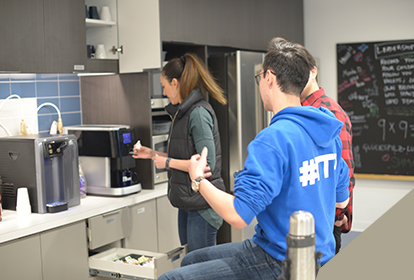 A kitchen full of amenities, including refrigerators, microwaves, toasters & more. We also provide all of the free coffee & tea you need to keep working throughout the day.